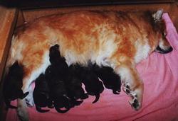 Die Welpen werden im Alter von 2 Wochen noch komplett von Ipsy versorgt.