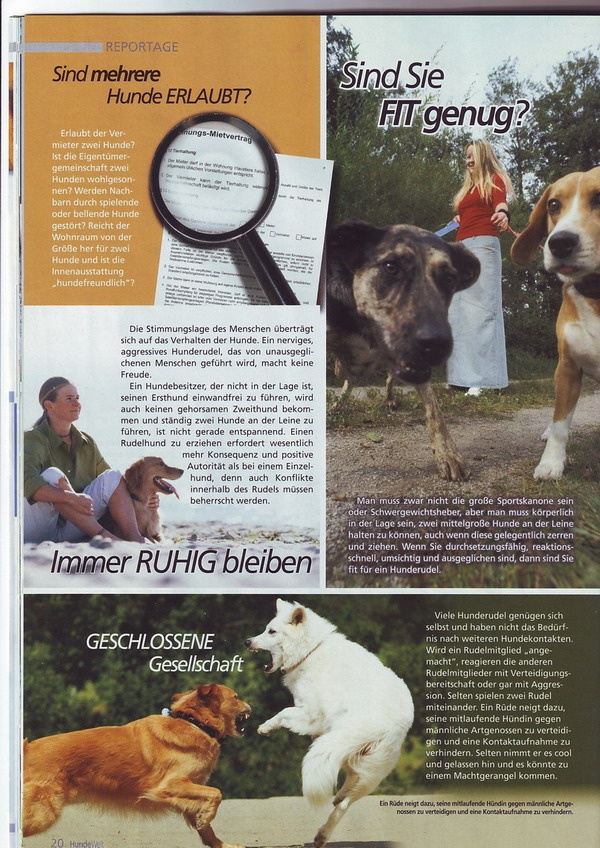 Ich freue mich, dass die Zeitschrift "Hundewelt" meine Tipps zur Rudelhaltung übernommen hat.